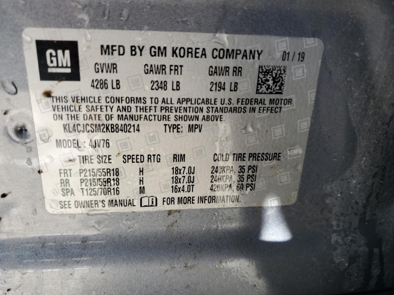 KL4CJCSM2KB840214Дата