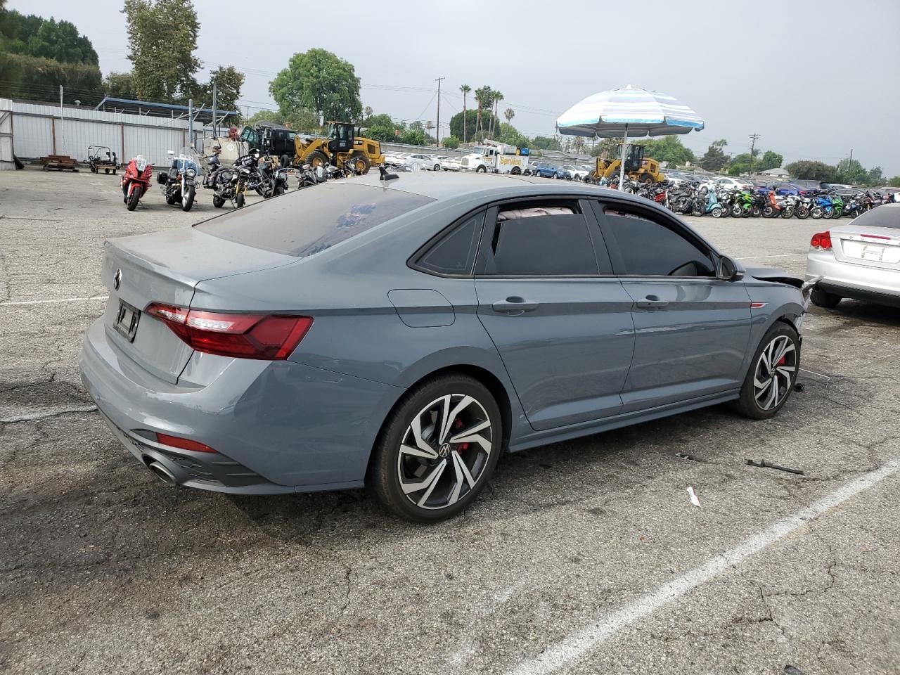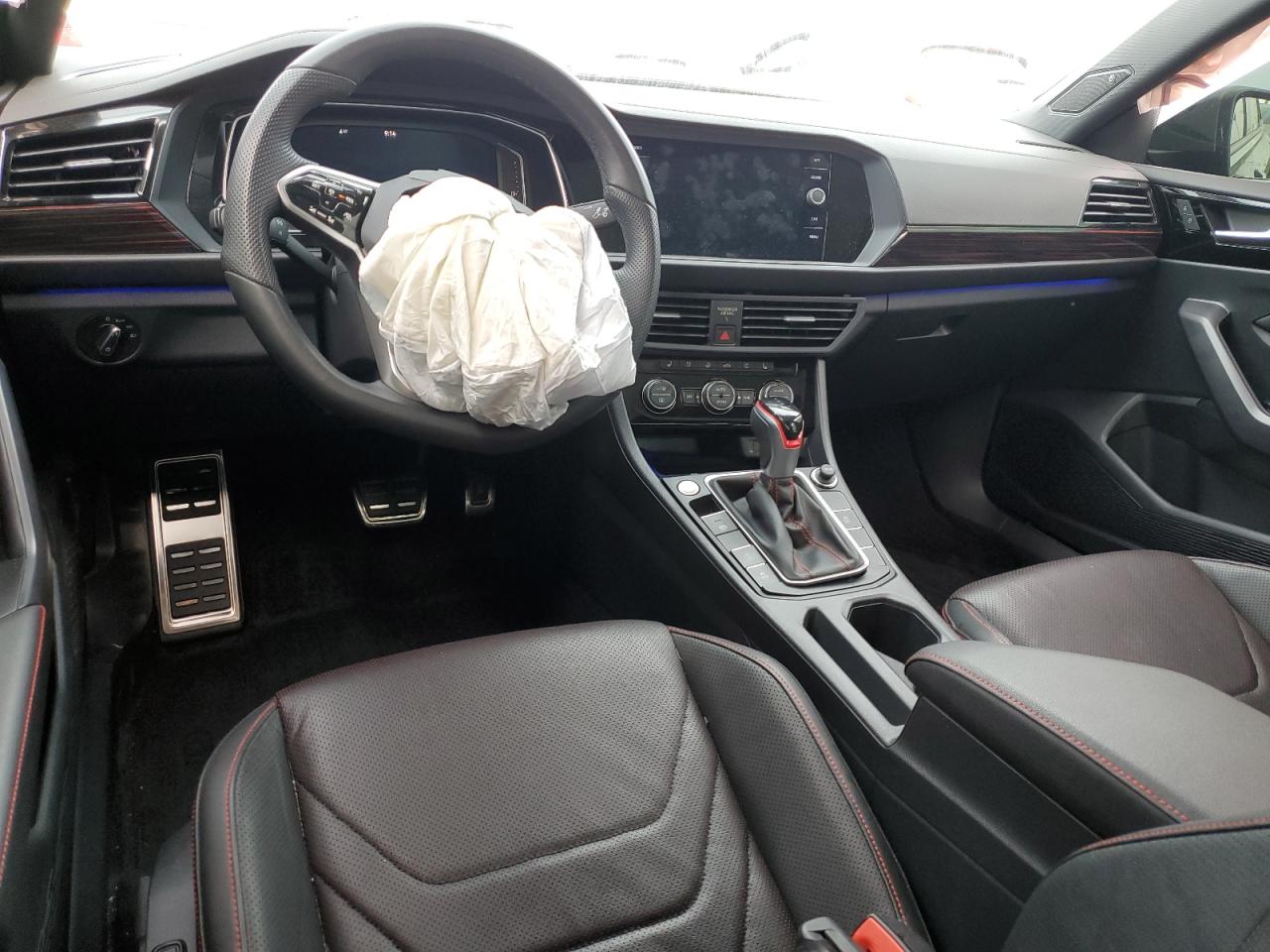 FairThe 2024 Volkswagen Jetta GLI Autobahn, gray in color with a DEFAULT start code, has sustained significant front-end damage, indicating a Body Vehicle Damage Category. The exterior condition is assessed as Fair, with visible damage requiring repair. The interior condition is rated as Good. The airbags have deployed. The car's lights, wheels, and glass appear to be in a functional state, despite the impact. This car requires significant repairs and is considered not drivable in its current state. The damage seems to be concentrated on the front end.