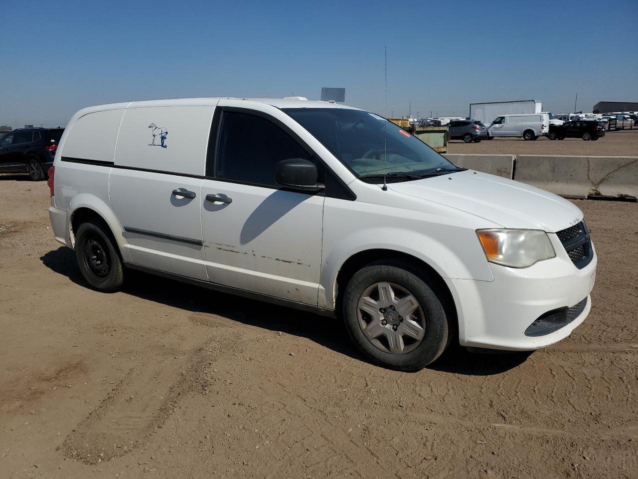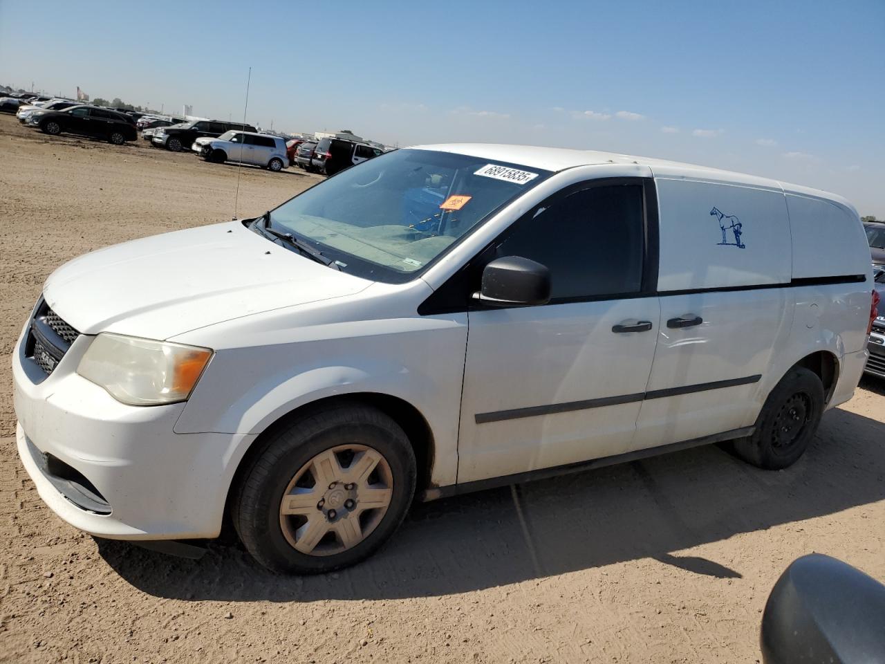 FairThis is a 2013 RAM Tradesman. The primary damage is hail, with secondary damage to the side of the vehicle. It has a white exterior. The car is drivable.