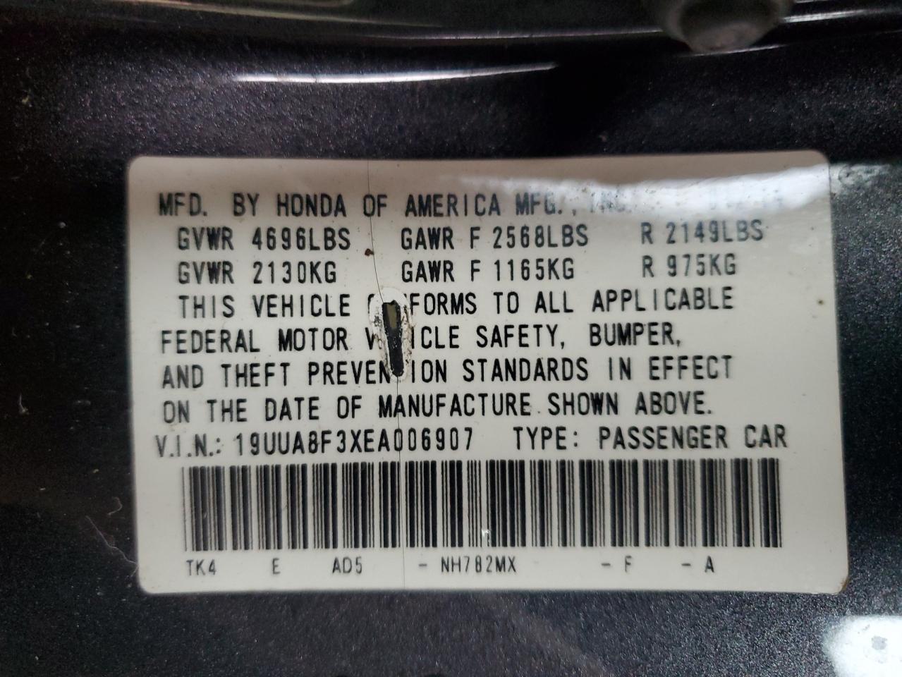19UUA8F3XEA006907Дата