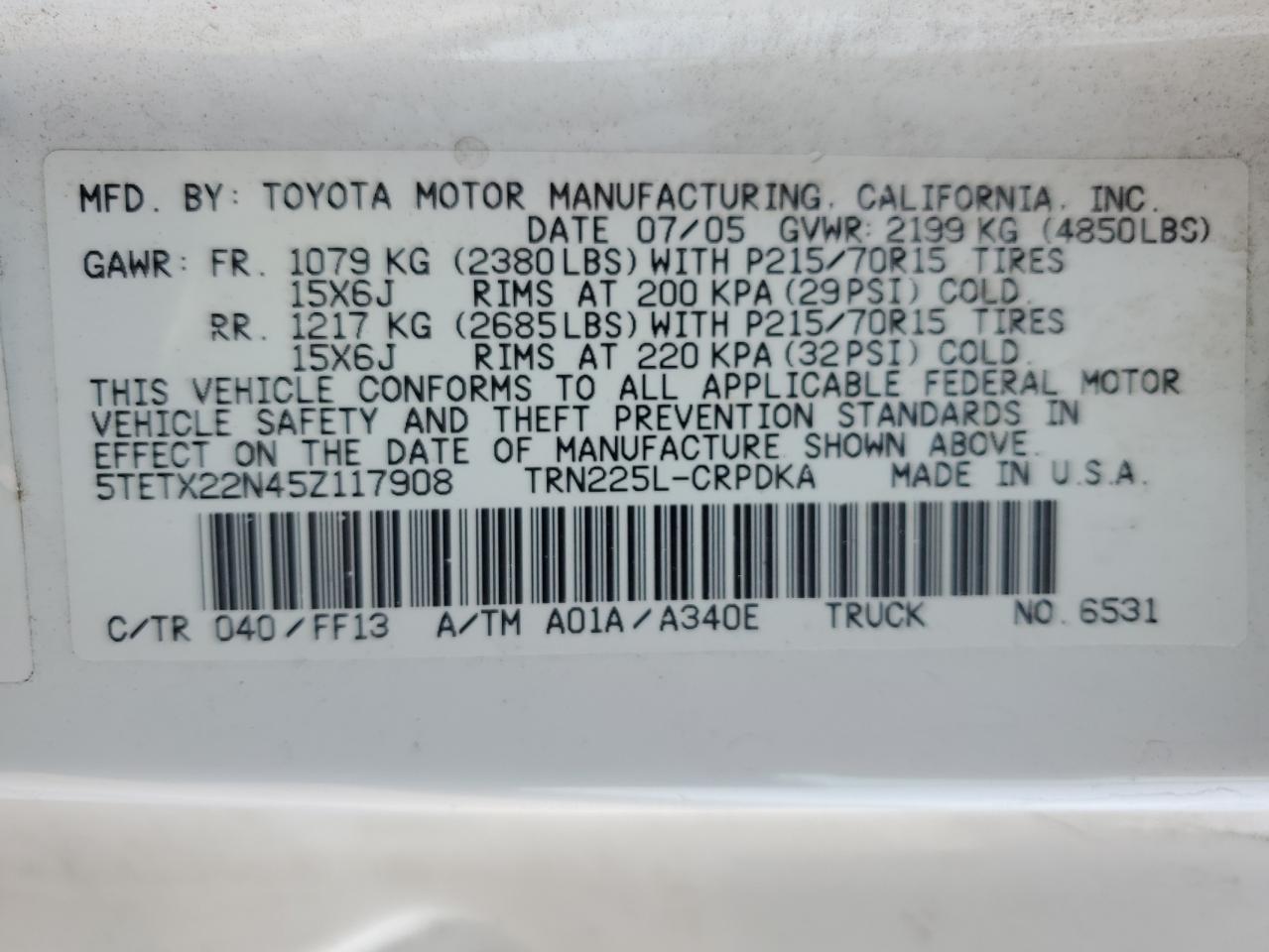 5TETX22N45Z117908Фінальна Ставка