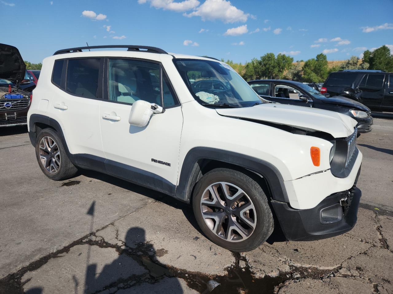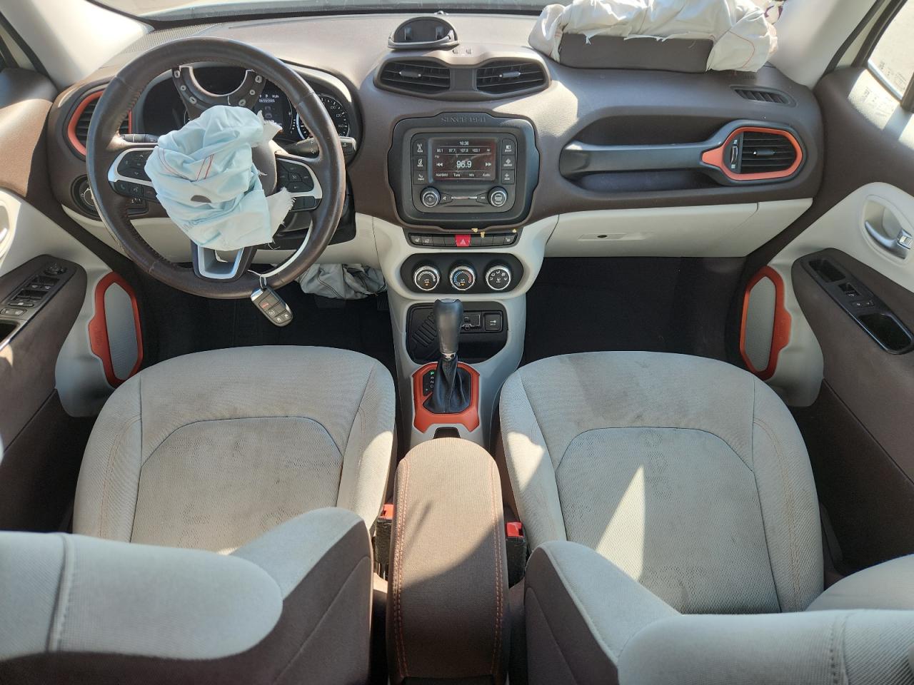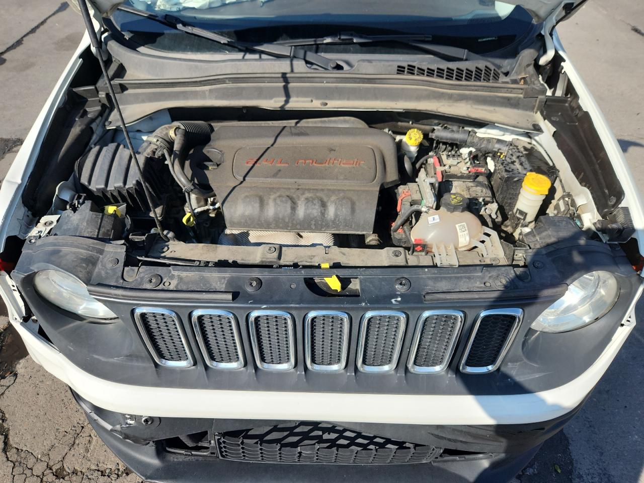 FairThe 2015 Jeep Renegade L has sustained significant front-end and side damage, indicating a collision. The white exterior exhibits moderate damage to body panels. Interior damage is also evident, including deployed airbags. The vehicle's 'Run & Drive Verified' status suggests it may still be drivable, but extensive repairs will be needed. The damage includes visible deformation to the front and side of the vehicle. The wheels and lights appear to be intact, while the glass is likely undamaged. Damaged vehicle, white Jeep Renegade, front-end damage, side impact, collision damage, repairable Jeep.