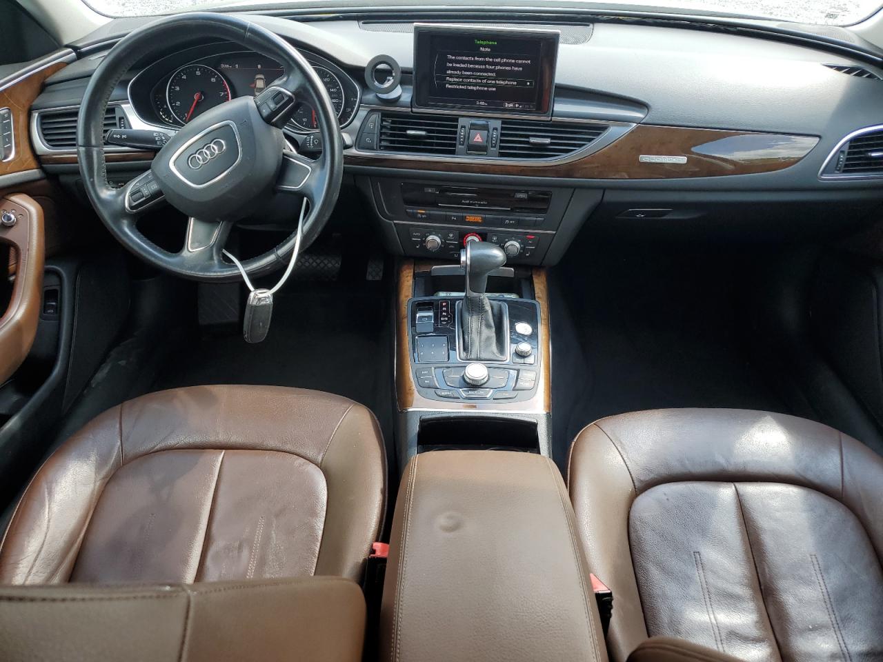 GoodThe 2013 AUDI A6 PREMIUM is a black sedan with a "Run & Drive Verified" start code. The vehicle shows minor dent/scratches and has a damage history. The vehicle has a black color. The interior features brown leather seats with some wear and tear. The instrument panel and infotainment system appear functional. The wheels and lights seem to be intact. The glass appears to be in good condition. The damage is primarily cosmetic with body panel damage. The car is drivable.