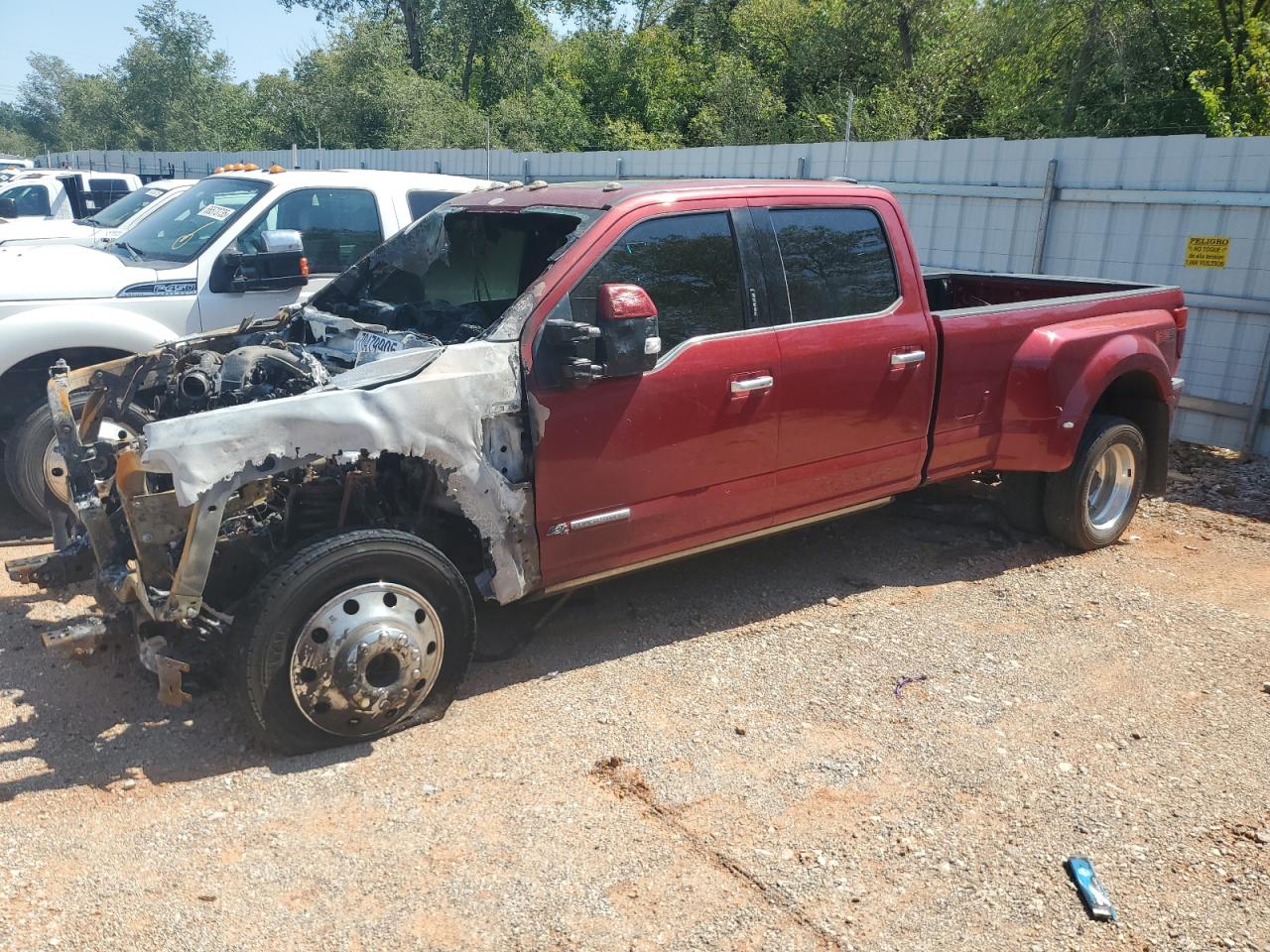 PoorThe 2020 Ford F450 Super Duty, with its red exterior, exhibits extensive fire damage. The front end, including the engine compartment and the interior, has been severely burned, indicating a major fire incident. The damage includes significant charring of the body panels, and the interior is extensively damaged with burnt seats and melted components. The wheels appear to be intact, but the overall condition is poor, requiring extensive repair.