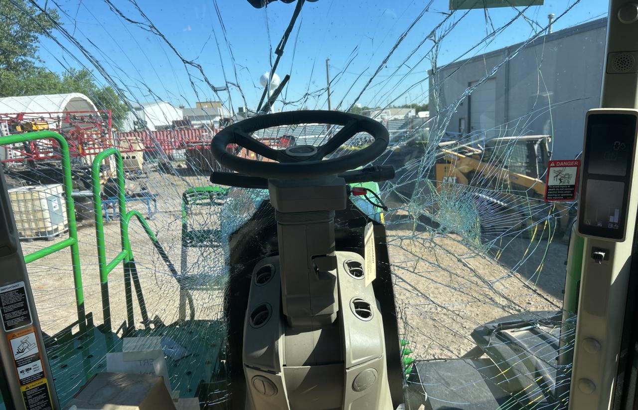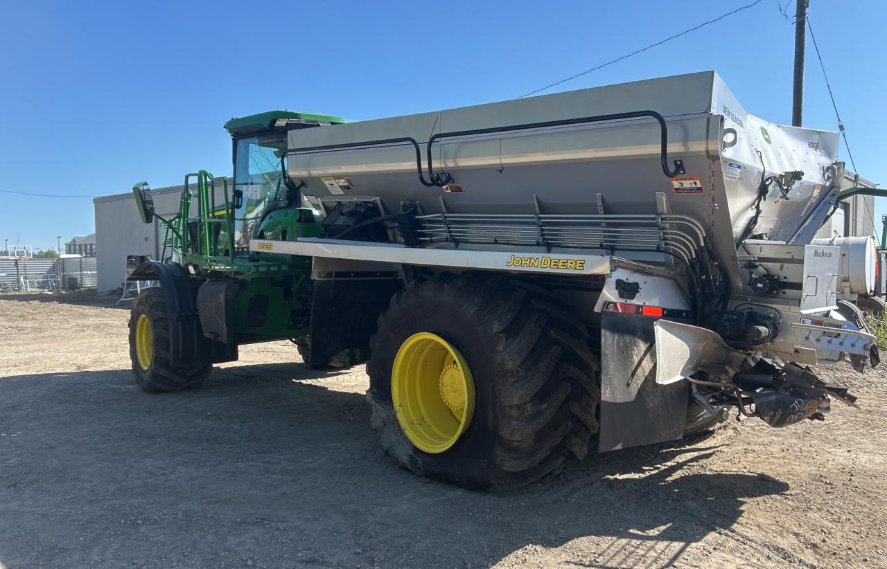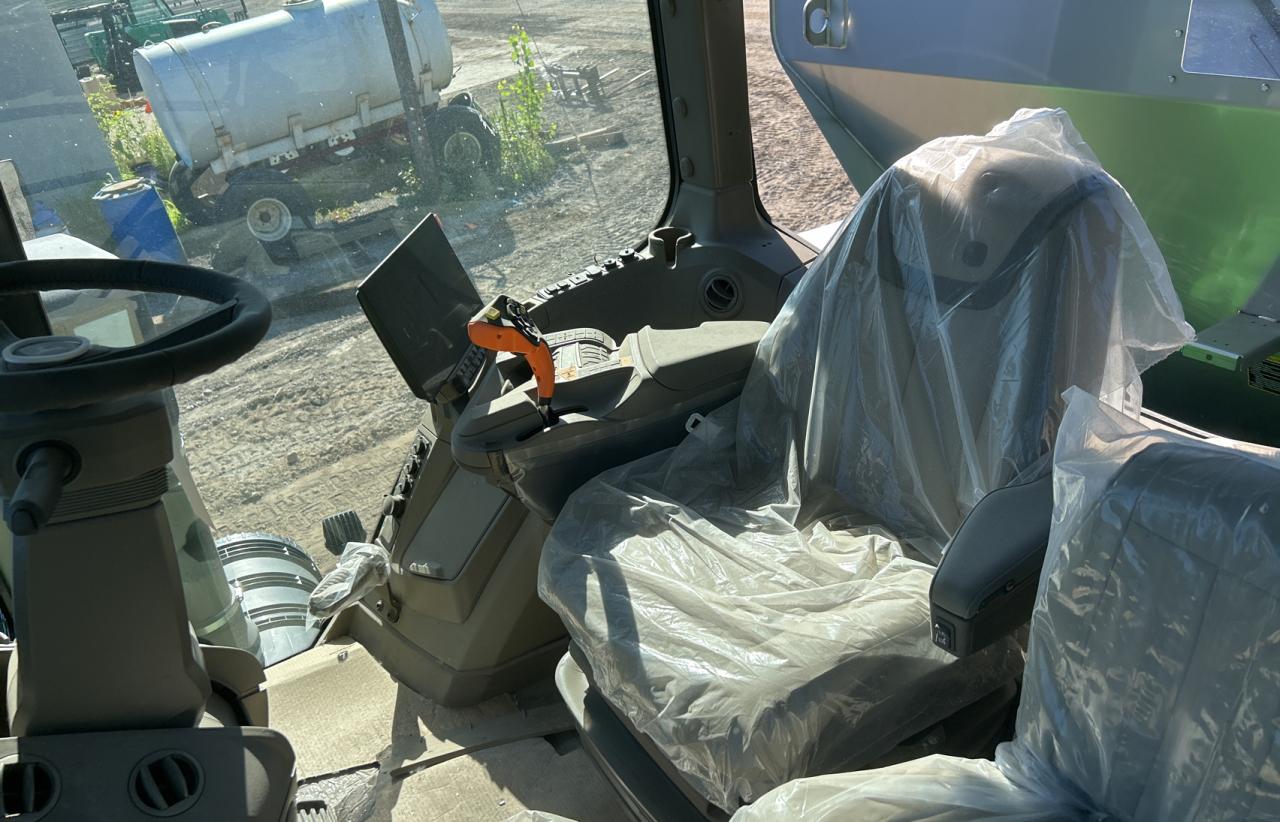 FairThe JOHN DEERE 800R 2025 is a green tractor. The primary damage is all over the body, and secondary damage is to the rear end. The wheels appear to be intact. The lights appear to be intact. The glass has significant damage. The interior has damage. The airbag condition is unknown.
