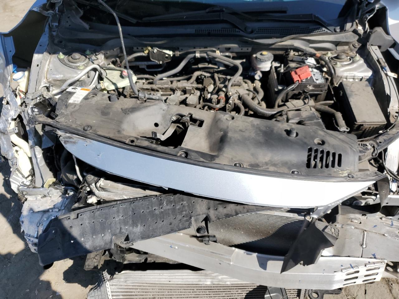 FairThis is a silver 2019 Honda Civic EX that has sustained significant front-end damage. The primary damage is to the front end, while there appears to be no secondary damage. The vehicle starts, the wheels are present but it needs repair. Interior damage is visible. The airbags have deployed. The car itself is a popular compact car known for its fuel efficiency and reliability, but this one requires considerable repair.
