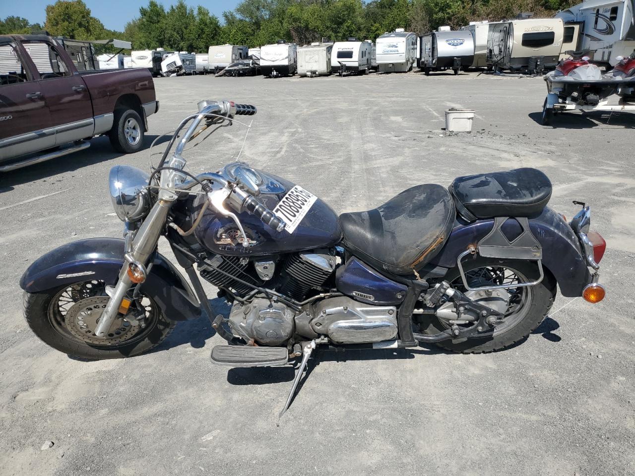 GoodThe 2001 Yamaha V-Star, a blue motorcycle, has sustained side damage. The engine is running. The lights and glasses appear to be intact. The vehicle shows signs of wear and tear consistent with its age. The interior exhibits moderate wear. The vehicle damage category is Body.