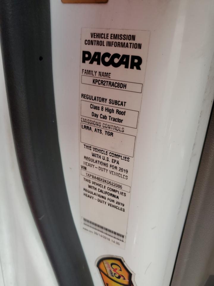 GoodPETERBILT TRACTOR 579 2019. The vehicle exhibits NORMAL WEAR with no secondary damage, featuring a white exterior. The vehicle is drivable.