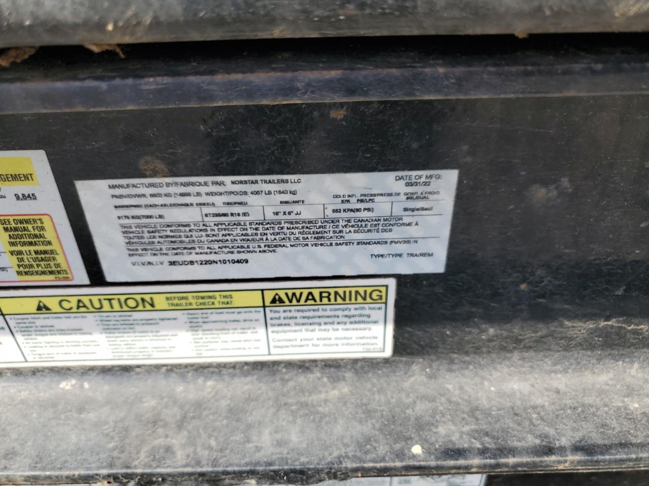 GoodThe vehicle appears to be a black NORSTAR UNKNOWN 2022 dump trailer. The primary damage is normal wear, and there is no secondary damage. The trailer's overall condition is good, with some visible signs of use. The interior is in excellent condition with no visible damage or wear and tear. Wheels and lights appear to be in good condition.