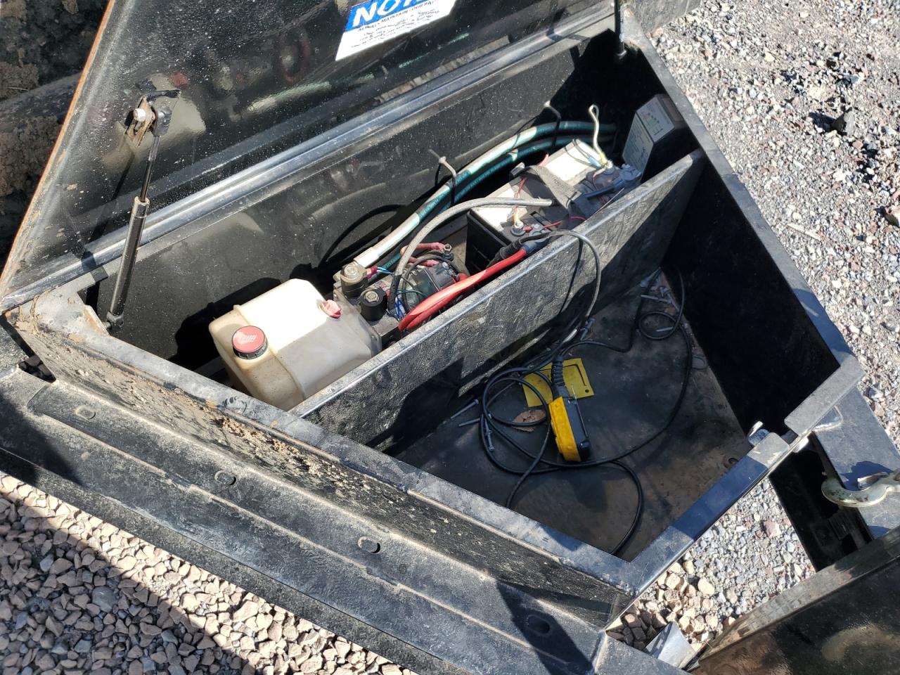 The dump trailer shows signs of normal wear, including minor cosmetic imperfections consistent with use. There is no significant damage to the body panels or frame.