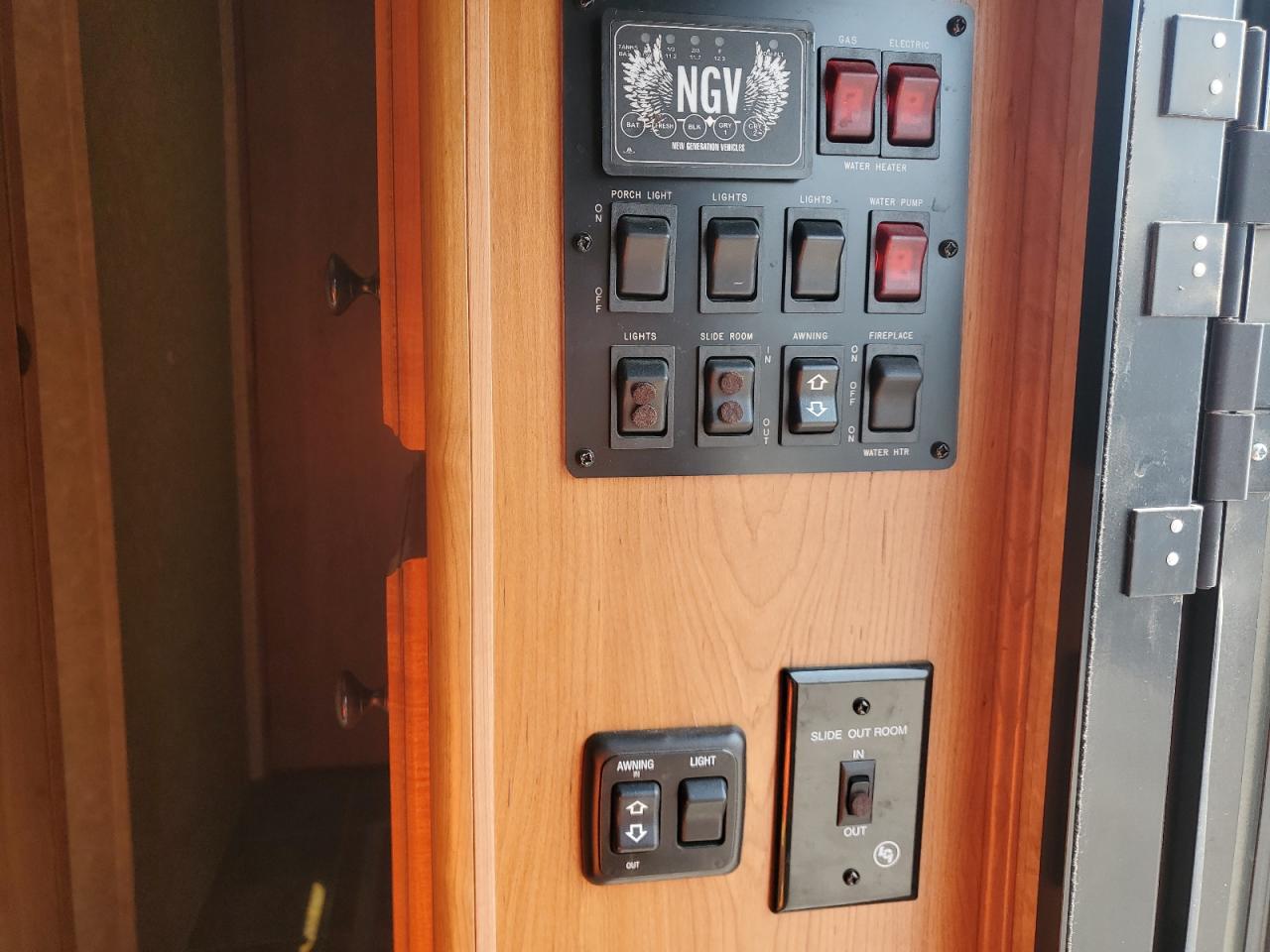 The vehicle has sustained significant body damage, including damage from hail. This affects the exterior panels and the overall look and function of the RV. The interior also exhibits signs of wear and tear. The wheels and lights seem to be in acceptable condition, while the glasses and windows may require inspection and possibly repair.