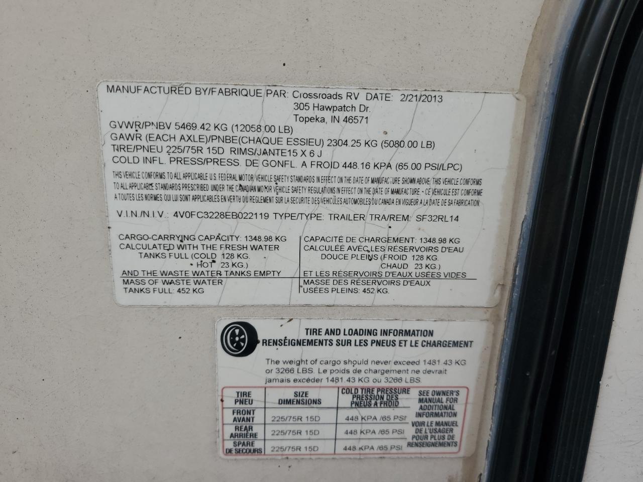 FairThis is a 2014 CROSSROADS SUNSET TRAIL RV, primarily affected by all-over damage with a secondary impact of hail damage. The vehicle's exterior is beige. The vehicle is experiencing Body damage, with its overall condition classified as Fair. This indicates moderate visible damage that may require repairs, but it is still drivable. The interior condition is also Fair, showing noticeable wear and tear. The wheels and lights appear to be intact, but the glasses may have some damage due to hail. The Sunset Trail has significant body damage which means some body panels need replacing or repairing and that impact the overall exterior conditions, and the interior need a check.