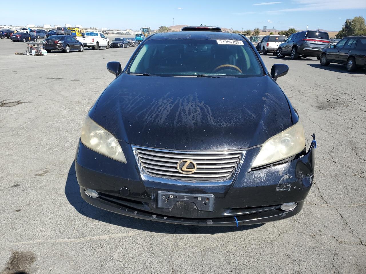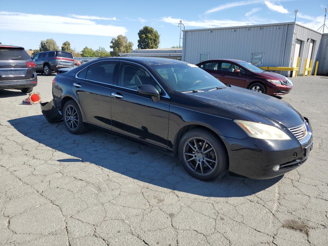 FairThe 2008 Lexus ES 350 exhibits significant rear and front-end damage. The black exterior shows considerable impact damage at the rear, with the bumper detached, and some damage visible at the front. Interior appears to have wear and tear, specifically on the seats and dashboard. The wheels are in working condition. It's a "Run & Drive Verified" car.