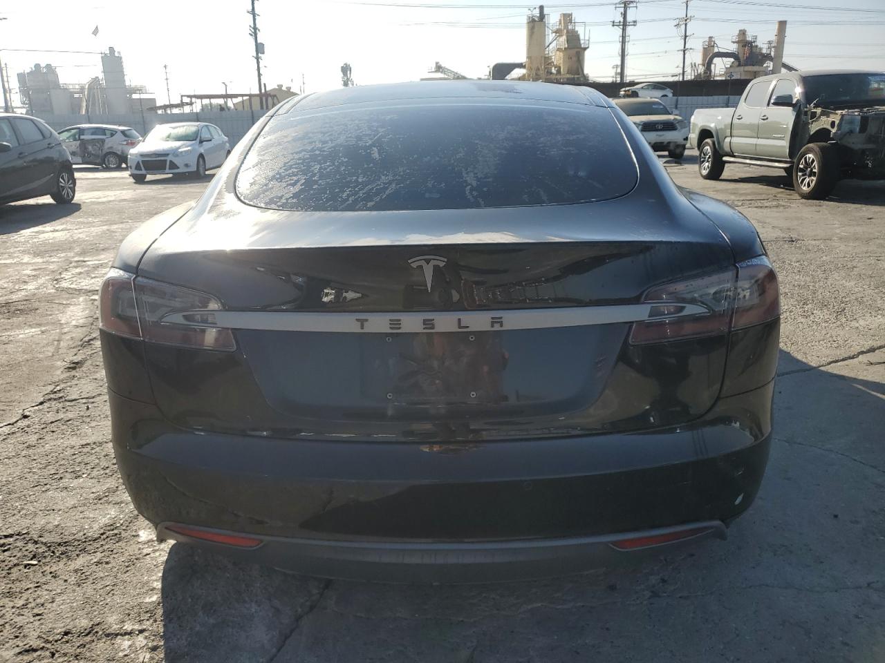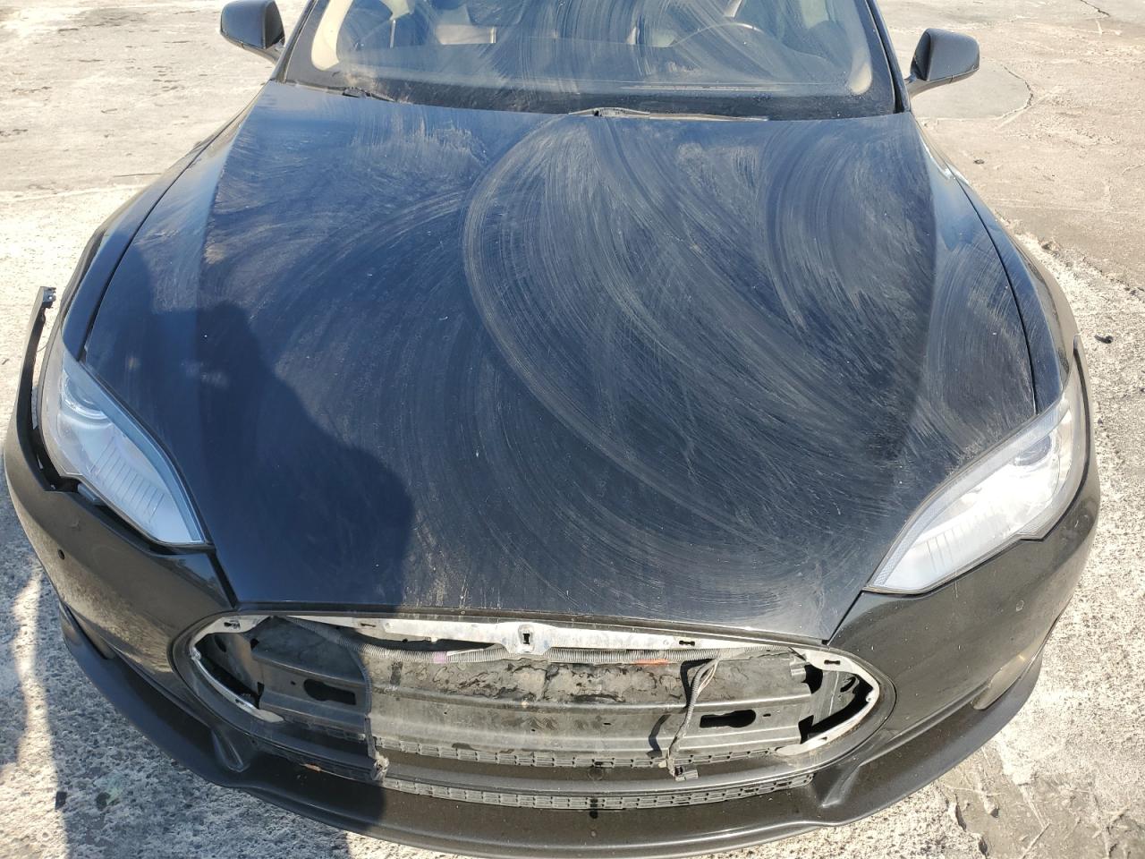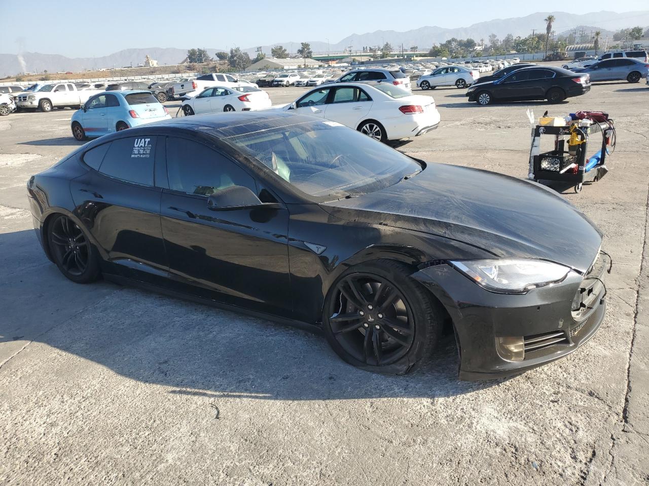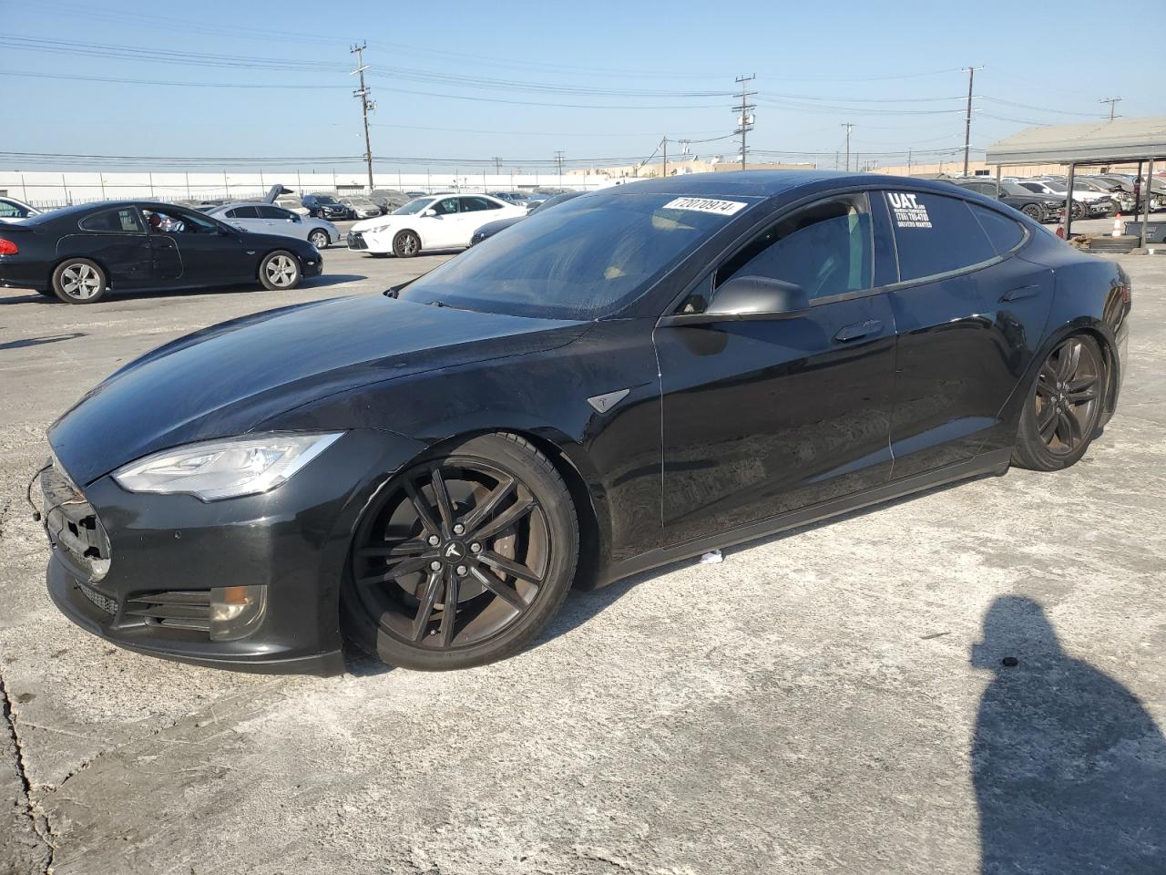 Fair2014 TESLA MODEL S, black, with FRONT END damage. The car's exterior shows significant visible damage, impacting its overall condition. The front end is heavily damaged, requiring extensive repairs. Wheels appear intact. Interior shows damage and airbags deployed. It is marked as DEFAULT start code. The vehicle's overall condition suggests it requires considerable repair.