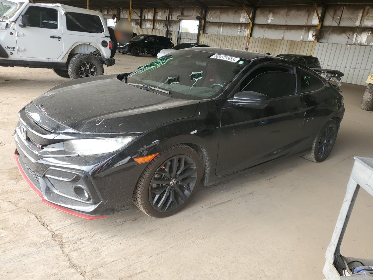 FairThe 2020 Honda Civic Si is a black coupe with significant rear-end damage. The primary damage is a rear-end collision, with no secondary damage reported. The vehicle starts. The exterior shows noticeable damage, particularly at the rear, but the interior appears to be in better condition. The wheels and lights are intact, while the glass has some damage. It might require substantial repairs. The interior has red carpets and red details on the seats. The dashboard shows 0 miles and other data. The car might be drivable after repair.
