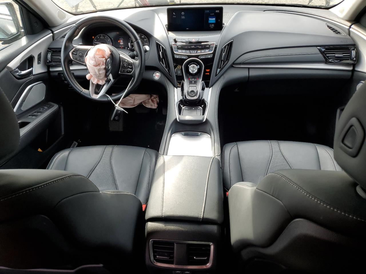 The Acura RDX exhibits significant front-end damage. The bumper and front fascia require replacement. Airbags have deployed inside the car. The vehicle is drivable, but the front end needs repair.