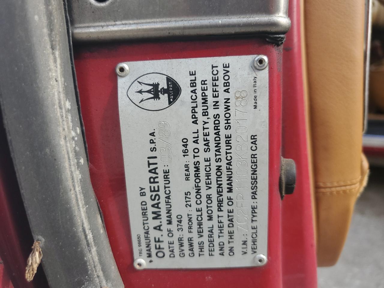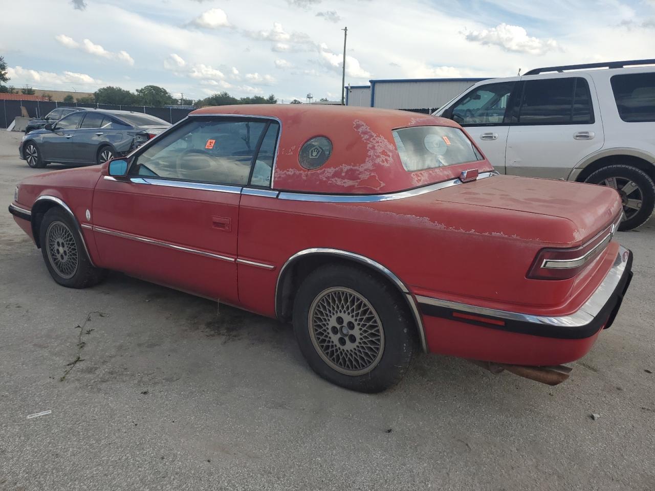 FairThe 1989 CHRYSLER TC BY MASERATI, a rare collaboration, showcases minor dents and scratches on its red body, indicating cosmetic damage. The interior displays wear and tear, with possible damage. The wheels and lights appear to be intact. The glass has no visible damage. This coupe presents moderate visible damage and require some repair but is drivable.
