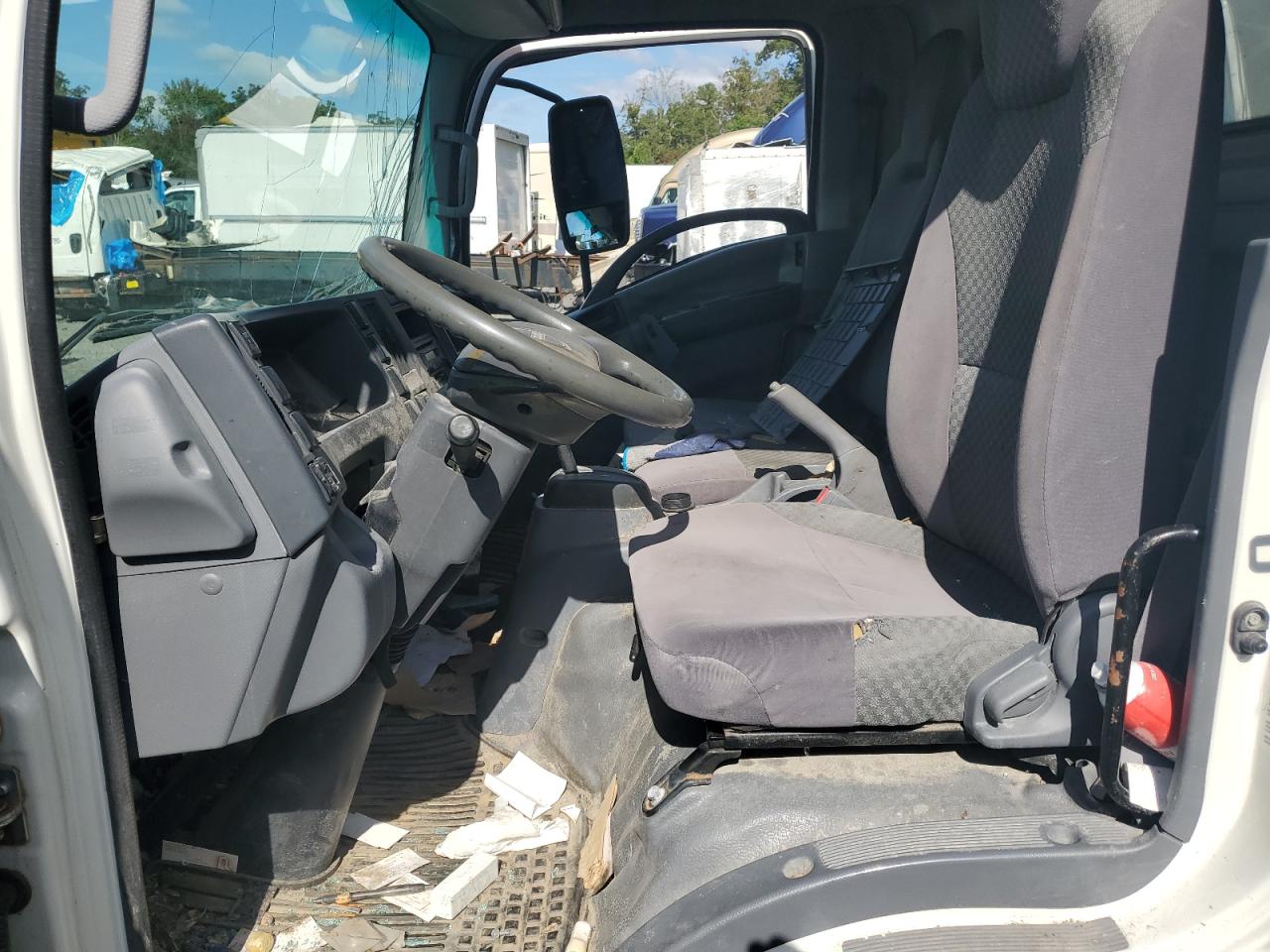 FairThe 2019 ISUZU NPR truck presents with significant front-end damage, including the cab. The undercarriage also shows signs of damage. The exterior is white. Interior damage is also visible, the glass is broken. The vehicle's overall state suggests it requires considerable repair and is likely not drivable in its current condition.