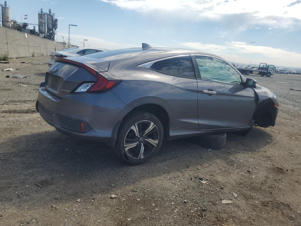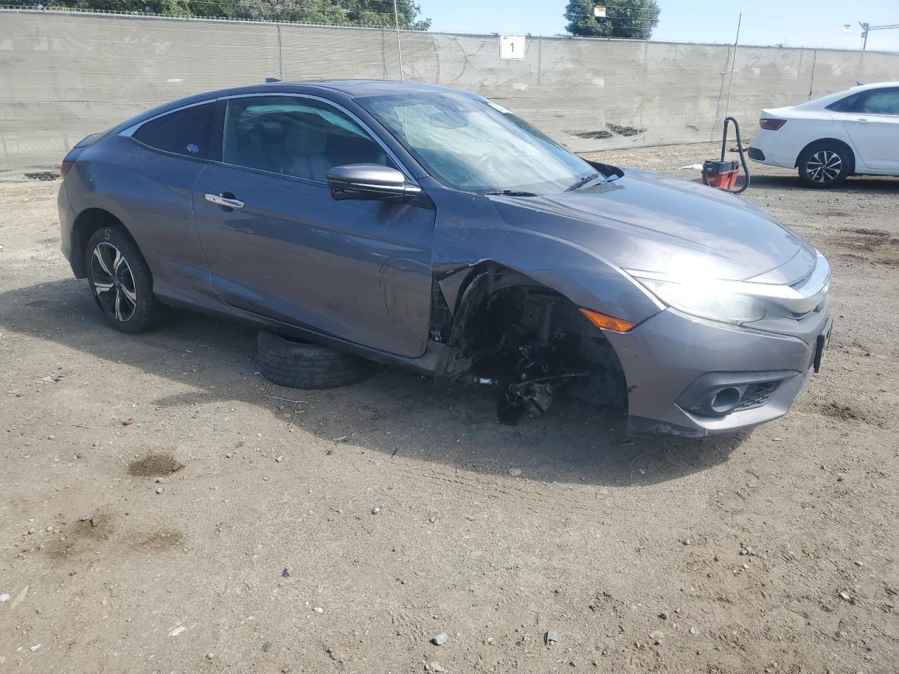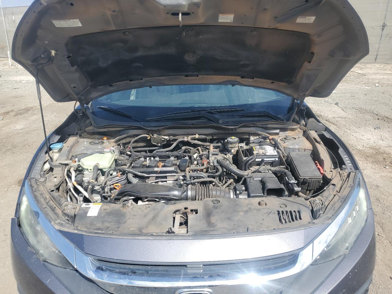 FairThis 2016 Honda Civic Coupe, painted in gray, has sustained significant front end and side damage. The exterior shows moderate damage, with noticeable impacts on the body panels. The wheels are intact, but the front end has extensive damage, and the side panels have been affected. The interior appears to have minimal damage, but the airbag system has some problems. The car starts, and the interior shows minimal wear and tear. The overall condition suggests the car requires repairs.
