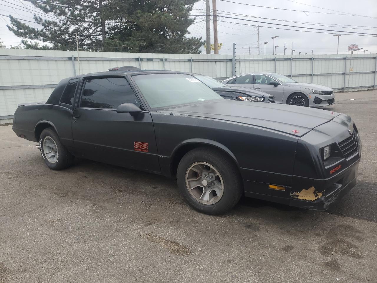 FairThe 1987 Chevrolet Monte Carlo SS in the images exhibits a black exterior with noticeable cosmetic imperfections. The vehicle's body shows signs of wear, including scratches and dents, particularly around the front bumper. The interior appears to be in better condition. Mechanically, the car is described as Run & Drive Verified, suggesting it is functional. The images show a classic car with potential for restoration. The wheels appear to be intact, and the glass is in good condition. The interior features original seats and dashboard components.