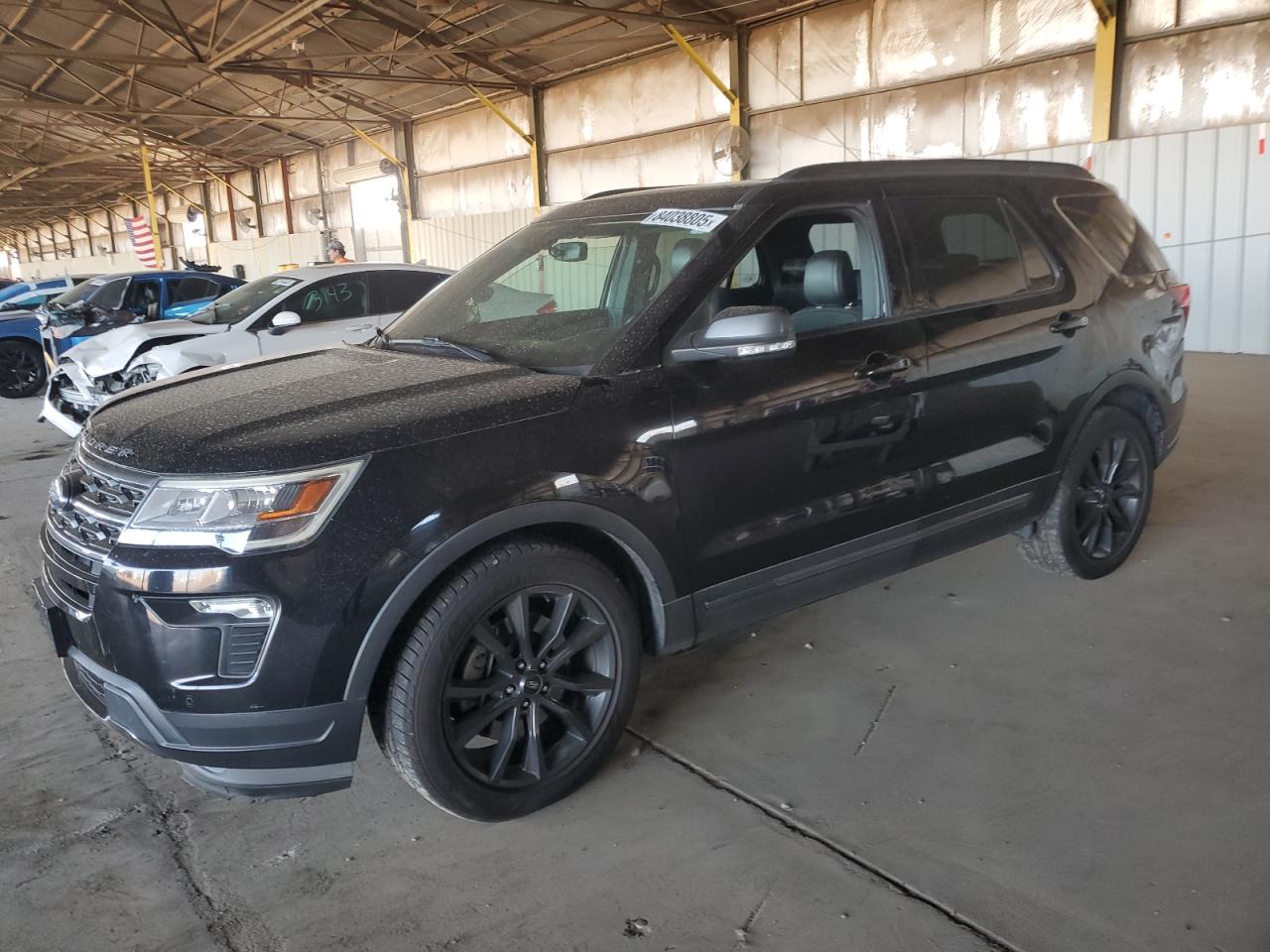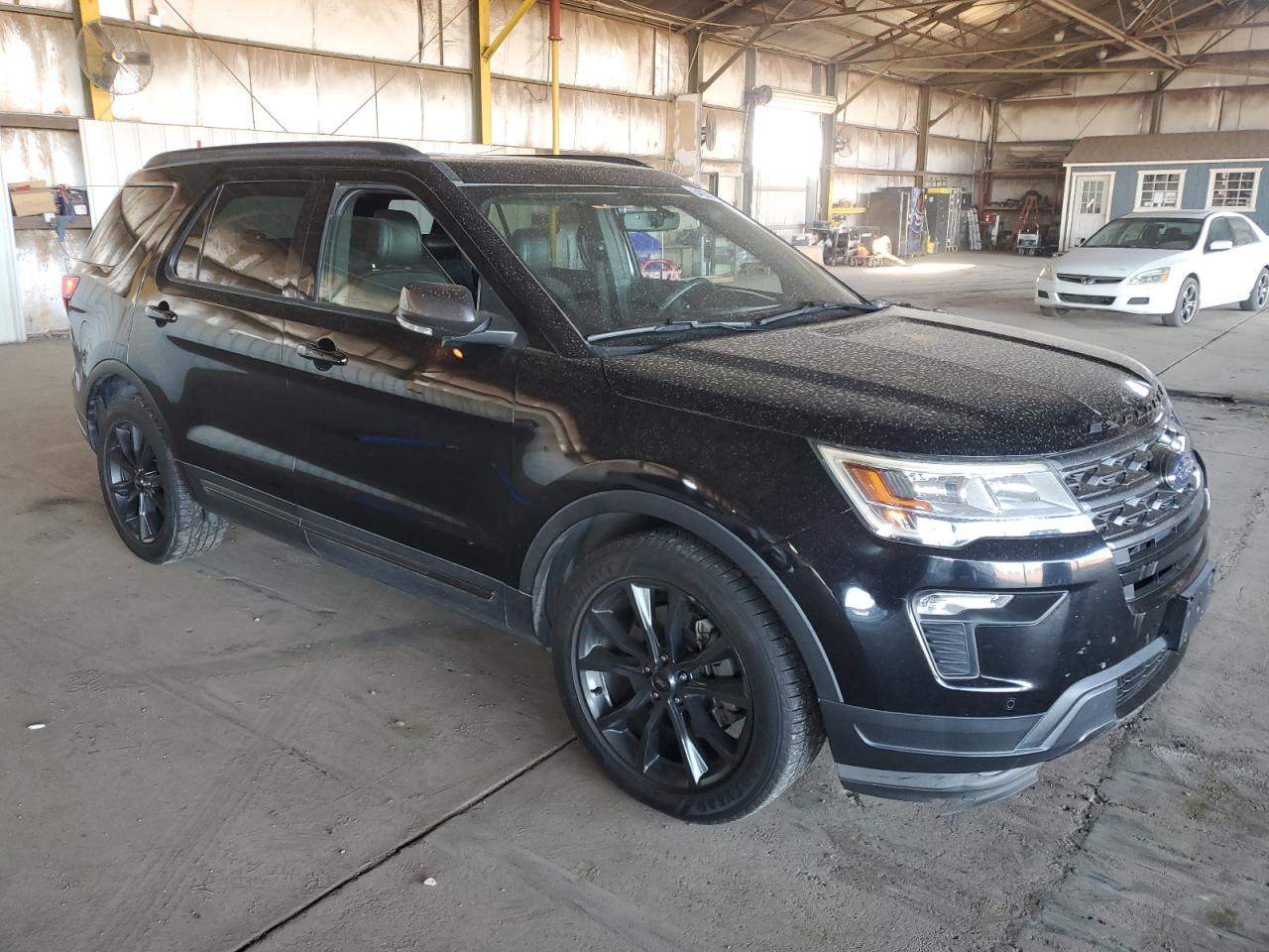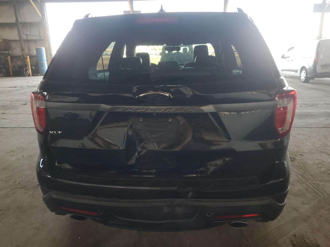 Fair2018 FORD EXPLORER X with Rear-End Body Damage, black. It has a Run & Drive Verified status. This vehicle has visible damage, including a rear-end collision. The exterior shows moderate damage, indicating the need for repairs. The interior presents with minor wear and tear, consistent with its age and mileage. Wheels and glasses appear to be fine. The damage is focused on the body panels, with no mechanical issues. Airbags status is unknown