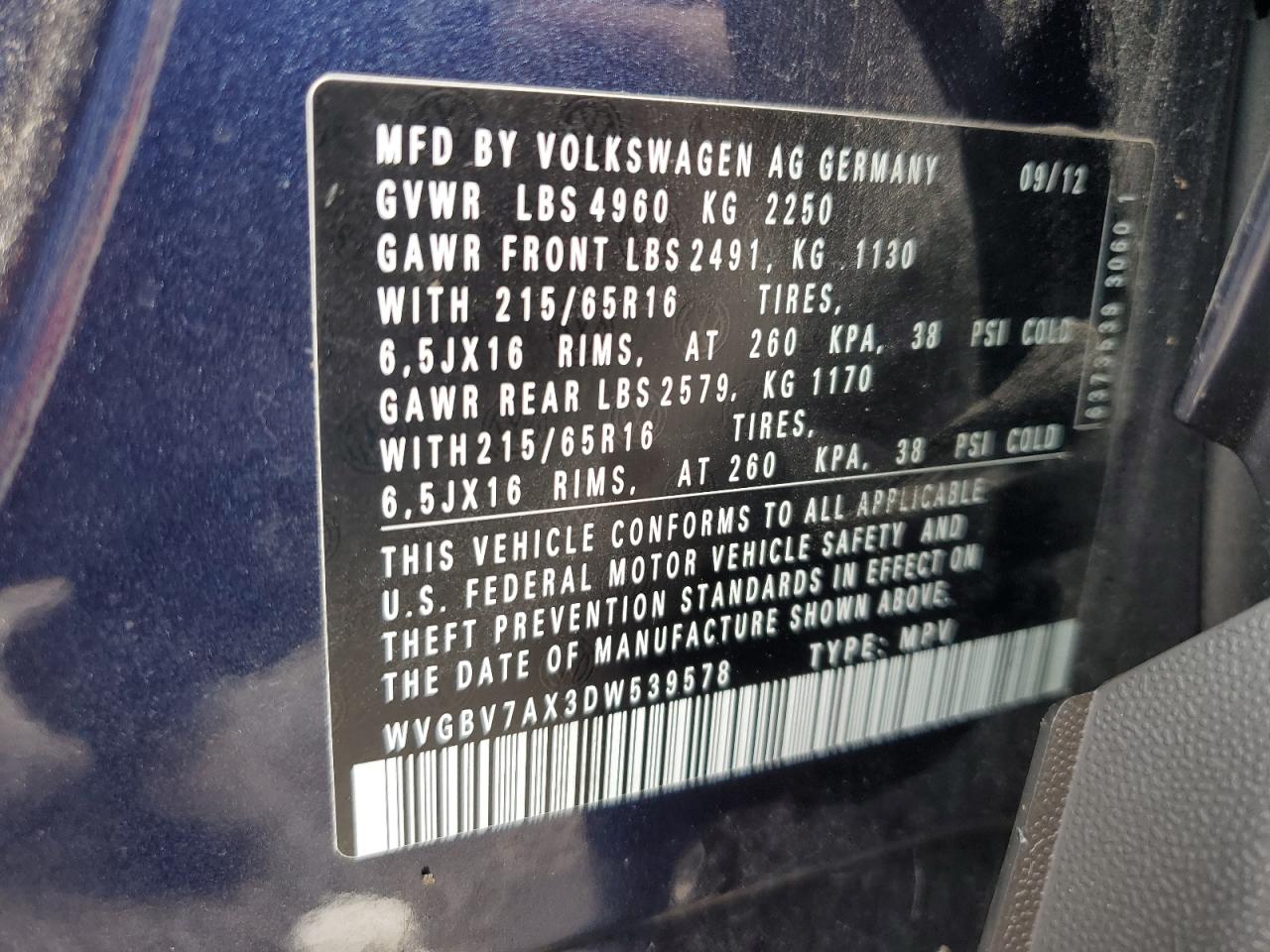 GoodThis is a 2013 VOLKSWAGEN TIGUAN S. The car is blue and is reported to Run & Drive Verified. The primary damage is NORMAL WEAR, and there's no secondary damage. The car shows moderate visible damage overall, particularly to the body panels, which is drivable. The wheels, lights, and glasses appear to be in good condition. Interior shows normal wear with no significant damage or airbag deployment.
