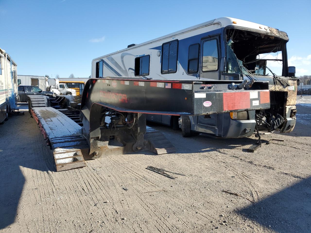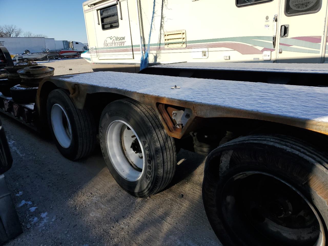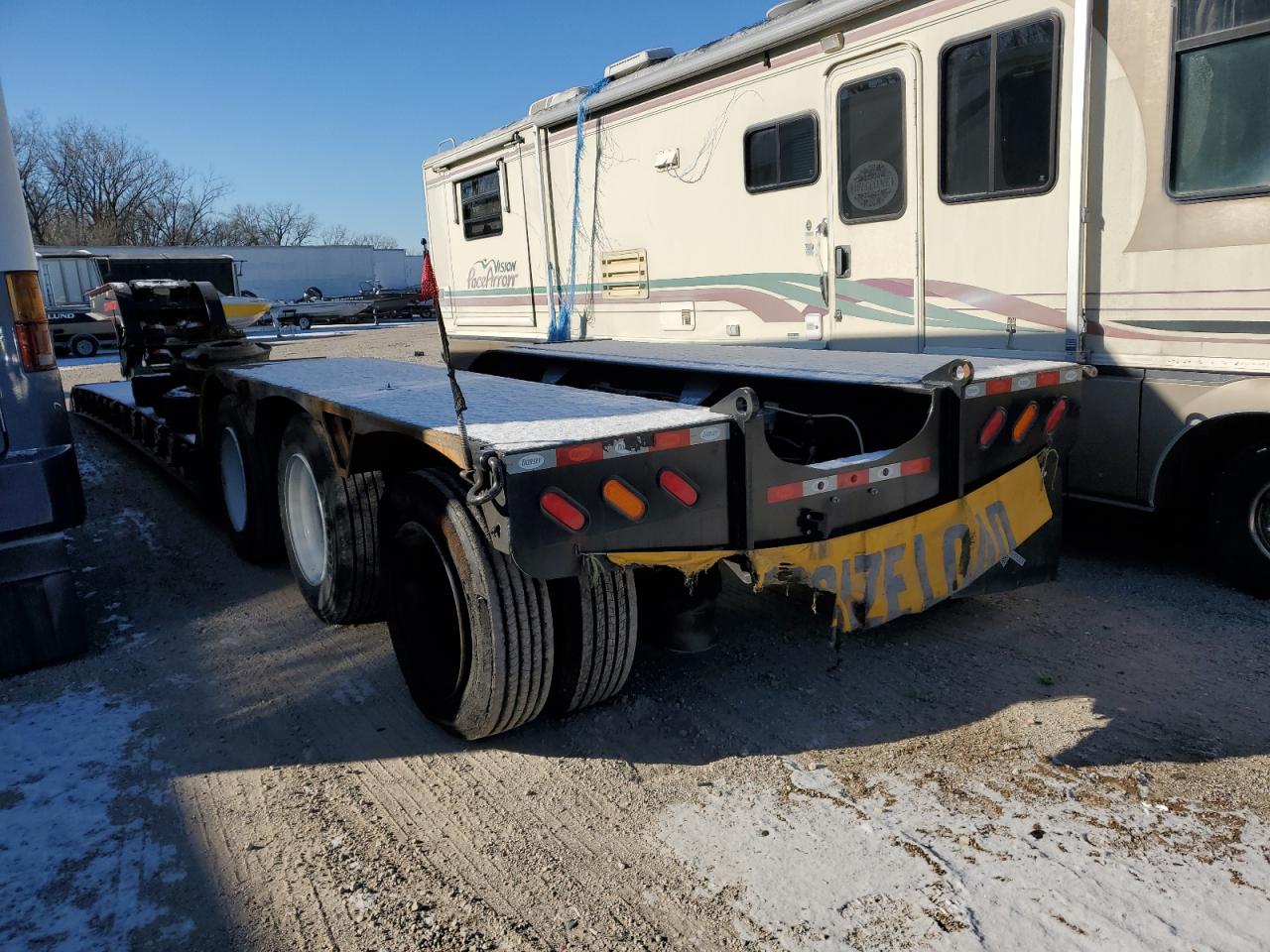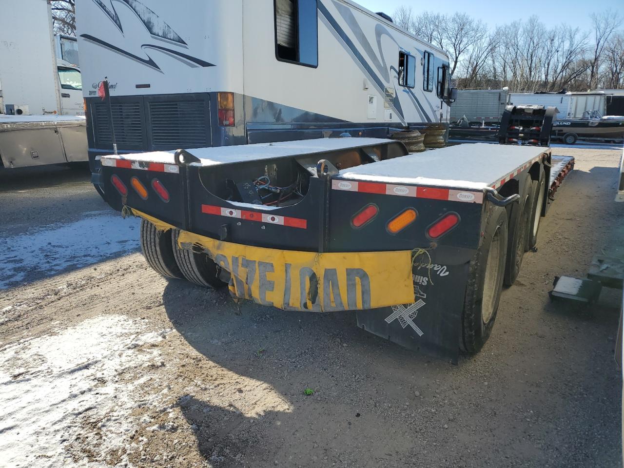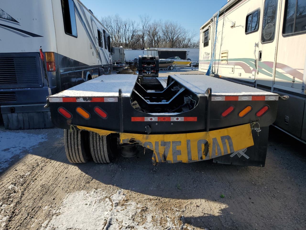 The trailer exhibits extensive burn damage to the body. The cabin's structure is compromised, affecting the roof and potentially other areas. There is no visible secondary damage.