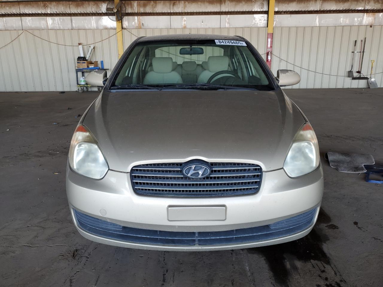FairThe 2007 Hyundai Accent GLS is presented in a gold color. The primary damage is to the rear end. The car is a Run & Drive Verified vehicle. The interior shows signs of wear and tear, the seats have stains. The car's exterior is exhibiting visible damage. The wheels appear to be in a usable state, and the lights and glasses have no damage. The airbag status is not possible to assess from the provided images. This vehicle appears to need repair and is drivable.