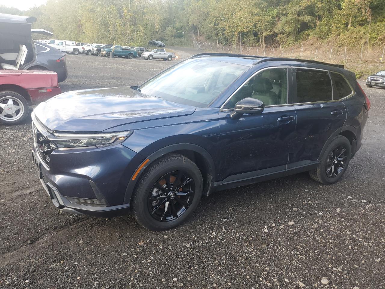FairThis is a 2024 HONDA CR-V SPORT in blue. The primary damage is to the side of the car, and there is no secondary damage. The vehicle starts. The vehicle has sustained body damage. The wheels, lights, and glasses appear to be intact, although there may be some minor cosmetic imperfections. Interior damage is not clearly visible. The airbags status is unknown. The car's condition is fair, with visible body damage, suggesting it may require repairs. Despite the damage, the vehicle is drivable.