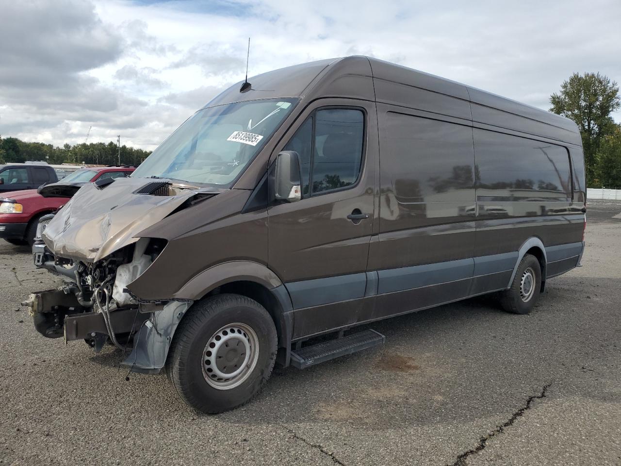FairThe brown 2015 FRHT SPRINTER 2500 exhibits significant front-end damage, affecting the body panels and front components. The airbags have deployed, indicating a collision. The interior shows signs of wear and tear. The car's overall state reflects the impact of the accident, requiring considerable repair.