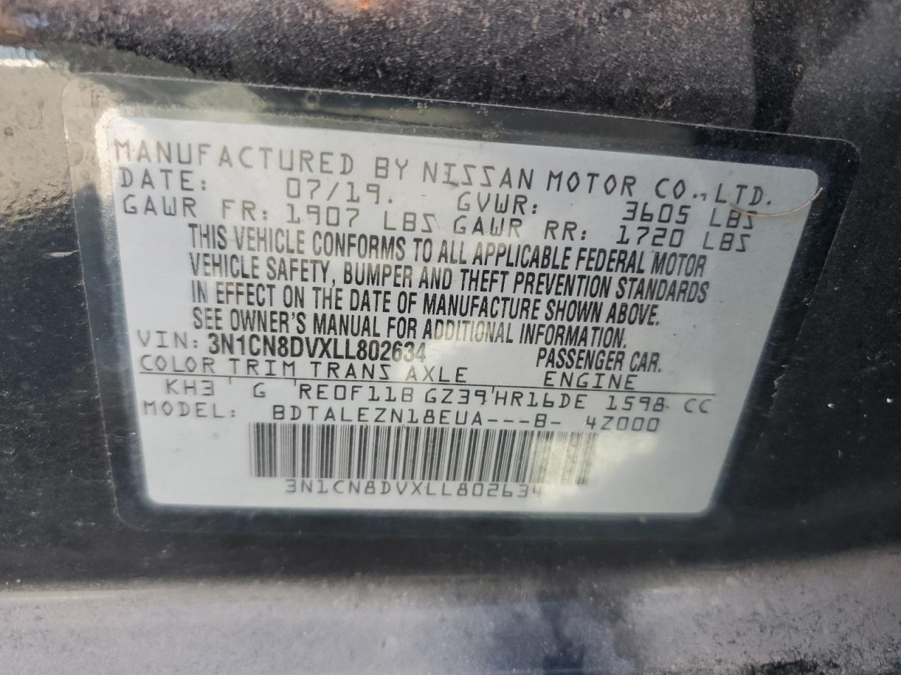 3N1CN8DVXLL802634Дата